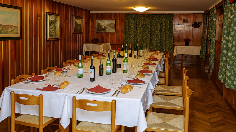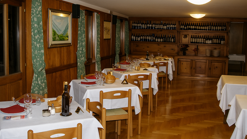 I hotellets restaurang serveras traditionella rätter från Aostadalen och det italienska bergsköket. Menyn varierar efter säsong och råvaror, med fokus på lokala produkter.